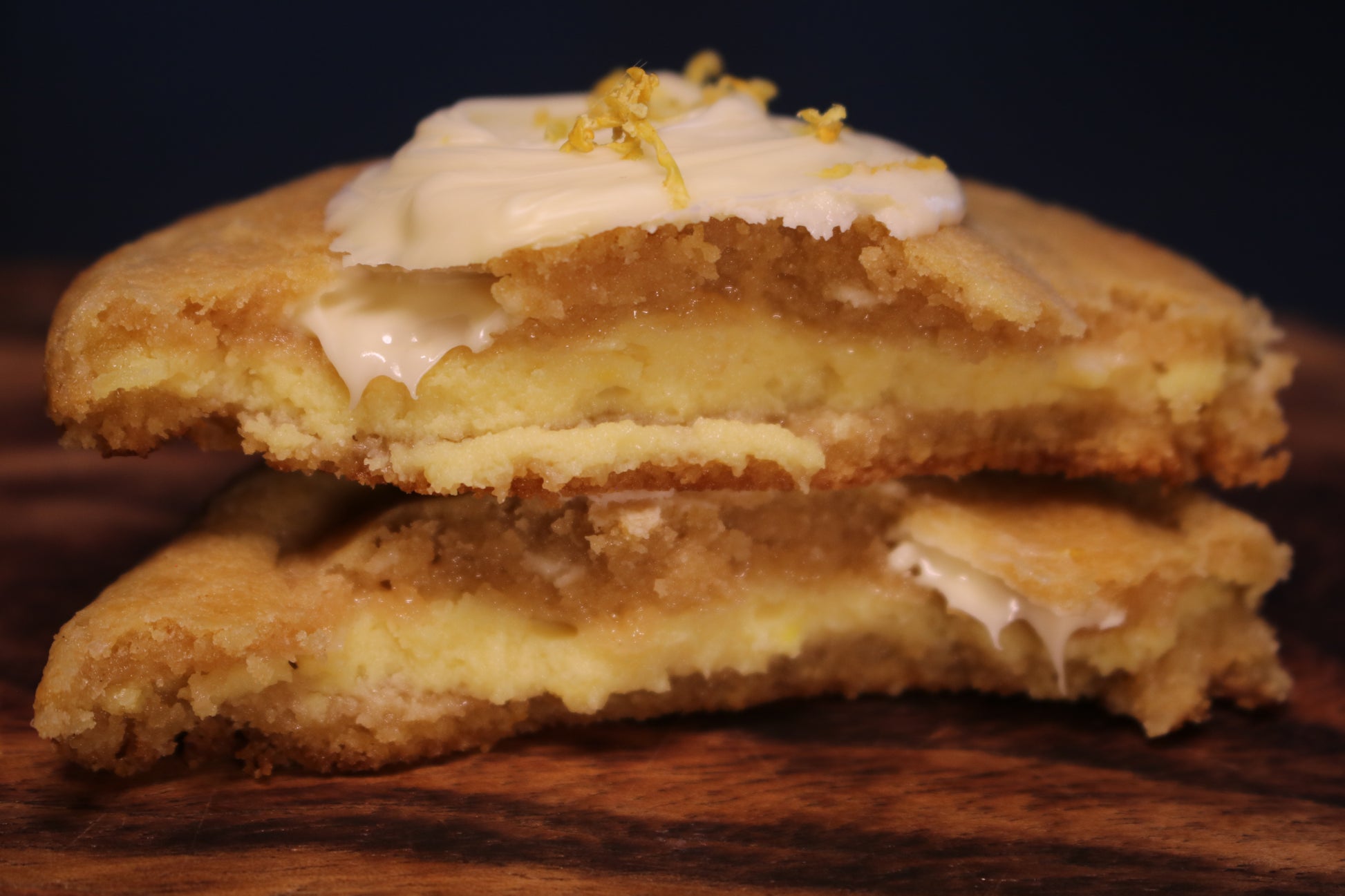 Vanilludeig með hvítum súkkulaðibitum, fyllt með mjúkum sítrónubrigadeiro.